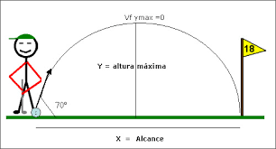Alcance ( x) :Es la distancia que recorre el proyectil, medida en entido horizontal desde el punto incial del disparo, hasta el punto de caida, que se encuentra al mismo nivel que el primero.